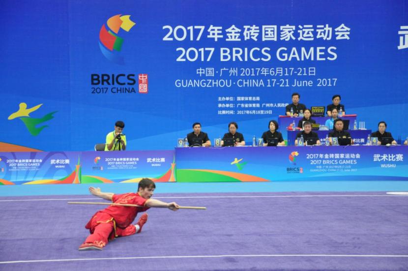 2017年6月16-19日,广州体育职业技术学院综合体育馆圆满完成金砖国家运动会武术项目比赛承办工作,来自5个国家的55名运动员、技术官员参加了在广州体职院举行的8个项目的比赛。开幕式当天,国家主席习近平向金砖国家运动会发来贺信,学院的承办工作得到各国官员、运动员、裁判员的一致好评。