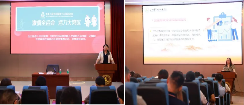 会上,学生处处长邓娉通报了招生就业、征兵工作、学生信息管理系统及中国国际大学生创新创业大赛等相关情况,并对新学期新生入学安排、黎伟权奖励基金评选以及十五运会和残特奥会赛事服务保障等重点工作进行了部署。