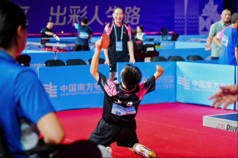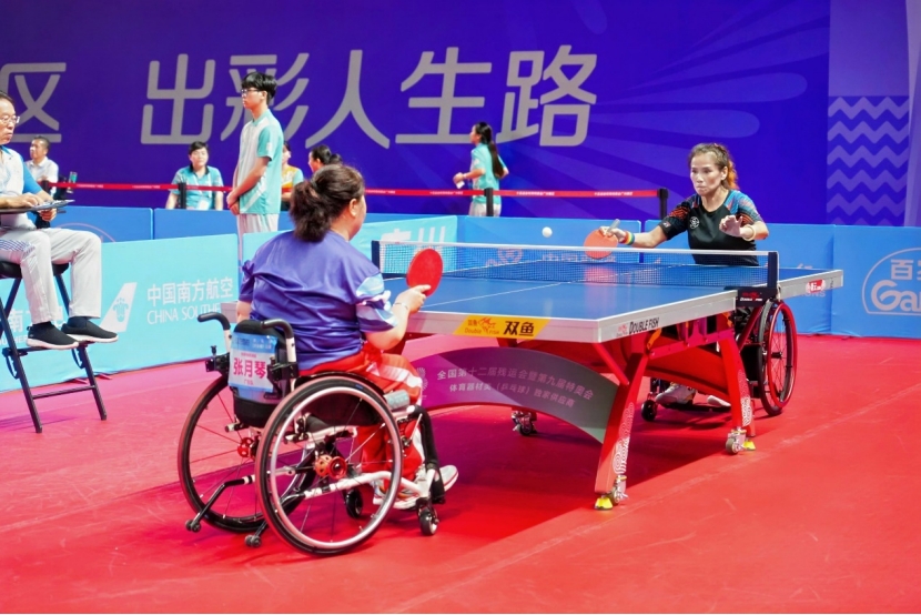 本网讯 9月8日,中华人民共和国第十二届残疾人运动会暨第九届特殊奥林匹克运动会乒乓球(大众组)比赛进入第二天,比赛在广州体育职业技术学院体育馆火热进行。来自全国各地的健儿们在赛场上奋勇拼搏,展现出坚韧不拔的拼搏精神和积极向上的精神风貌。