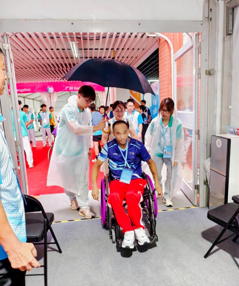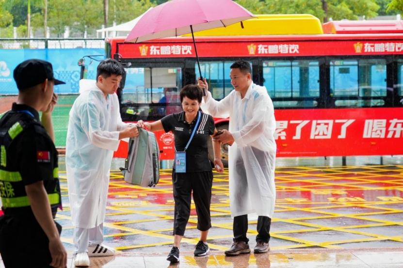 单项竞委会为保障比赛顺利进行,做了大量细致的工作。比赛日突遭罕见暴雨,极端天气对比赛构成巨大挑战,气象部门与赛事接待及安保团队紧密协作,移除易倾倒标志牌、悬挂物,确保4个验证岗5台X光机8条安检通道8个安检门秩序顺畅;接待工作雨中高效运转,接驳酒店大巴悉心协助运动员进入赛场;志愿者与观众服务处临时调配了工作雨衣以及观众雨伞袋,共同应对暴雨等极端天气挑战;分级与辅具保障处保障团队在场馆与酒店间巡回支持,提供咨询辅具维修、流动服务车搭载维修、酒店辅具爱心专柜等贴心服务,为运动员顺利参赛保驾护航。