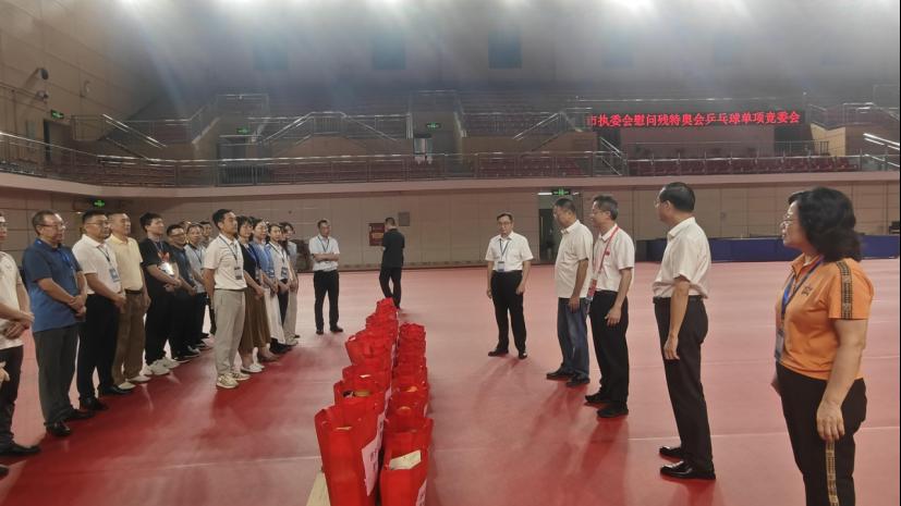 此次慰问不仅为残特奥会乒乓球竞委会送去了物资保障,更传递了党组织对基层一线的关心、关怀与鼓励,进一步增强了团队凝聚力和向心力。下一步,将继续以党建为引领,围绕赛事组织核心任务,持续做好各项保障工作,为残特奥会乒乓球比赛安全、有序、顺利的举办奠定坚实基础。