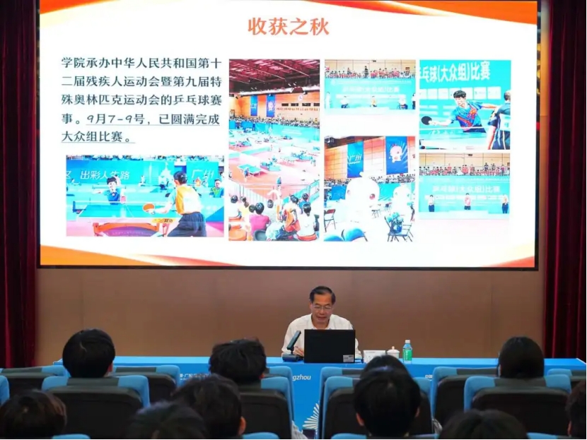 面向在场青年学子,他鼓励同学们继续赓续伟大抗战精神,以学院优秀师生为榜样,筑牢理想信念根基,锤炼过硬专业本领,以实际行动践行“请党放心、强国有我”的青春誓言。他特别提到,今年是十五运会和残特奥会的举办之年,学院将承办残特奥会乒乓球项目比赛,希望同学们积极参与赛事保障和志愿服务,在实践锻炼中提升能力,为体育强国建设贡献青春力量。