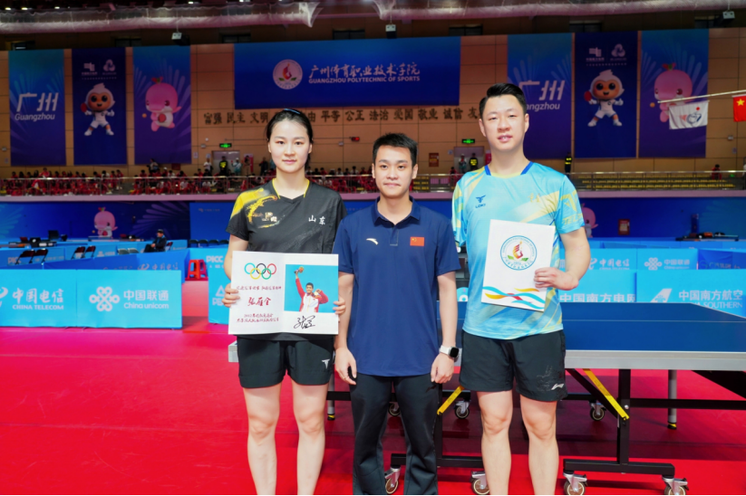 赛事期间,2012年伦敦奥运会跳水男子双人10米跳台冠军、广州市跳水队领队张雁全现身残特奥会乒乓球赛场观赛,与本届赛事肢体残疾组(站立)男子团体TT7金牌得主重庆队运动员廖克力、听力残疾组女子团体TT13银牌得主山东队运动员林焕展开了一场友好的乒乓球切磋,并送上签名的明信片做纪念,以体育人的热忱传递拼搏力量。这场跨越项目的互动,生动诠释了体育精神的传承与共鸣,为残特奥赛场增添了更多温暖与力量。