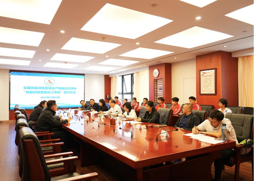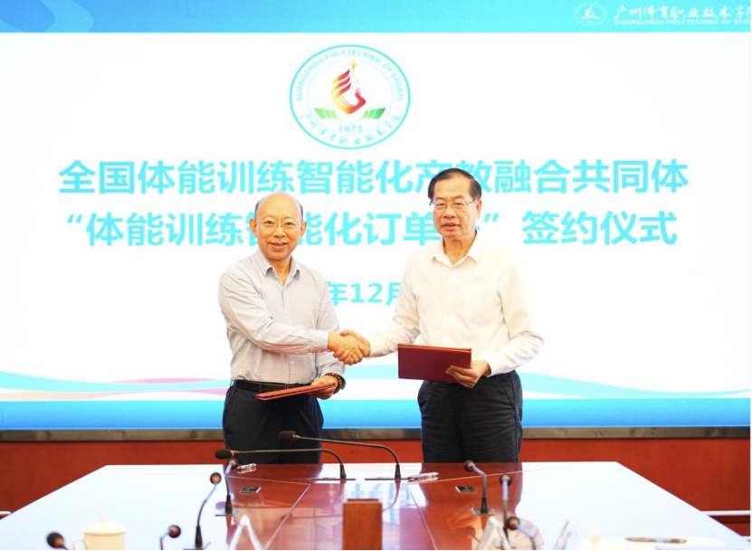 本网讯 12月24日,全国体能训练智能化产教融合共同体“体能训练智能化订单班”签约仪式在广州体育职业技术学院十楼三号会议室举行。这是在全国体能训练智能化产教融合共同体成立的背景下,学院为落实深化产教融合、校企合作,提升体育职业人才培养质量的重要项目。