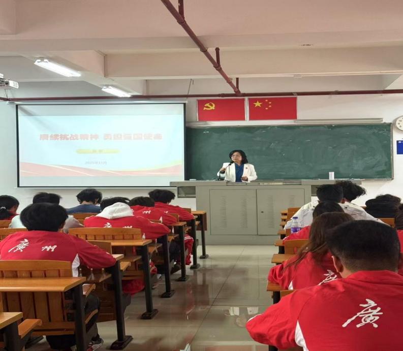 本网讯 为深入贯彻习近平总书记在纪念中国人民抗日战争暨世界反法西斯战争胜利80 周年大会重要讲话及关于思政课建设重要指示精神,加强学院思想政治理论课内涵式建设,切实发挥思政课在立德树人根本任务中的关键作用,引导青年学子从历史中汲取奋进力量、明确使命担当。近日,广州体育职业技术学院纪委书记林昭雄、副院长张苹先后以“纪念抗战胜利 坚定民族信念”为题,为高职部分班级学生讲授了兼具理论深度、历史厚度与现实温度的“形势与政策”课。