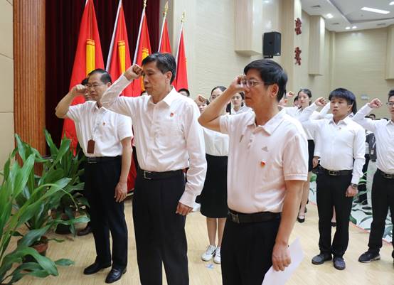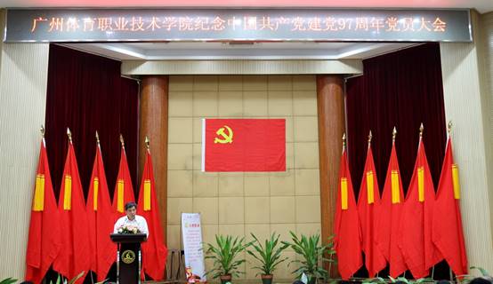 大会上,还有老党员为新党员佩戴党徽、新老党员在孔书记带领下共同诵读入党誓词等环节。本次会议由学院党委副书记、院长黄德敏主持,学院教职工党员以及来自体育运动系、体育产业系和体育保健与康复系的新党员等近200人出席了大会。