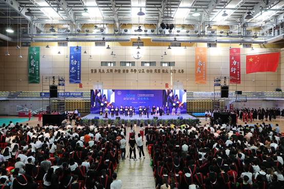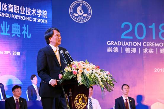 本网讯 鲲鹏振翼,不惧前路漫漫;云帆高挂,且趁浩浩东风。6月29日,广州体育职业技术学院2018届毕业典礼在东校区体育馆隆重举行。学院党委书记孔茂胜、院长黄德敏、校友会会长(康威集团体育用品股份有限公司董事长)黎伟权及学院各职能部门负责人、教师代表、2018届全体毕业生等出席了本次典礼。毕业典礼由梁国标副院长主持。