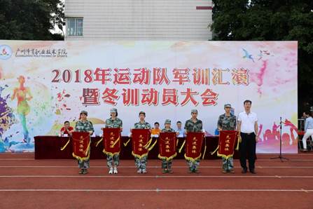 林彬副书记宣读了《关于表扬学院2018年运动队军训先进集体和优秀学员的决定》,吴民春副局长和梁国标副院长分别为获奖代表颁奖。