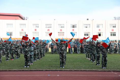 在学院院旗的引导下,伴随着庄严的进行曲,军训方队进行了肃穆的方阵、气势磅礴的口号、刚劲有力的摆臂、步调一致的踢腿,举手投足间,既透出军人般坚毅果敢的气质,又彰显了我院运动员昂扬向上的精神风貌,赢得了观礼台上各位领导和老师的阵阵掌声。随后,运动员们还为大家献上了指挥旗表演和手语表演。
