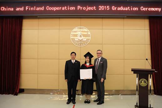 黄德敏院长、约尼阿霍宁校长为全体毕业生颁发了毕业证书