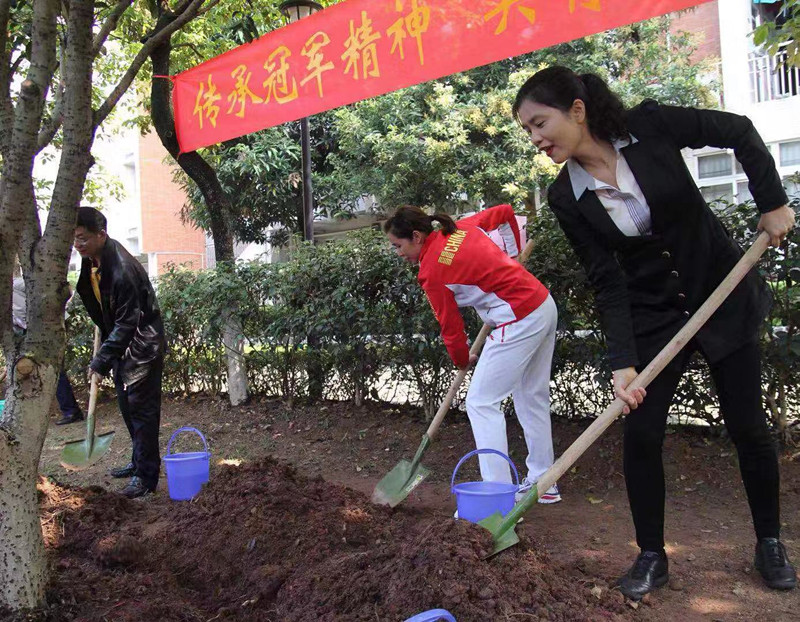 “冠军林”是学院标志性景观和校园文化建设品牌活动,自2010年首次举办至今,共邀请奥运冠军、世界冠军近四十人前来与学院师生同植“冠军林”,共育“冠军魂”。本次活动也为学院纪念建国70周年“百名冠军回母校”系列活动拉开了序幕。