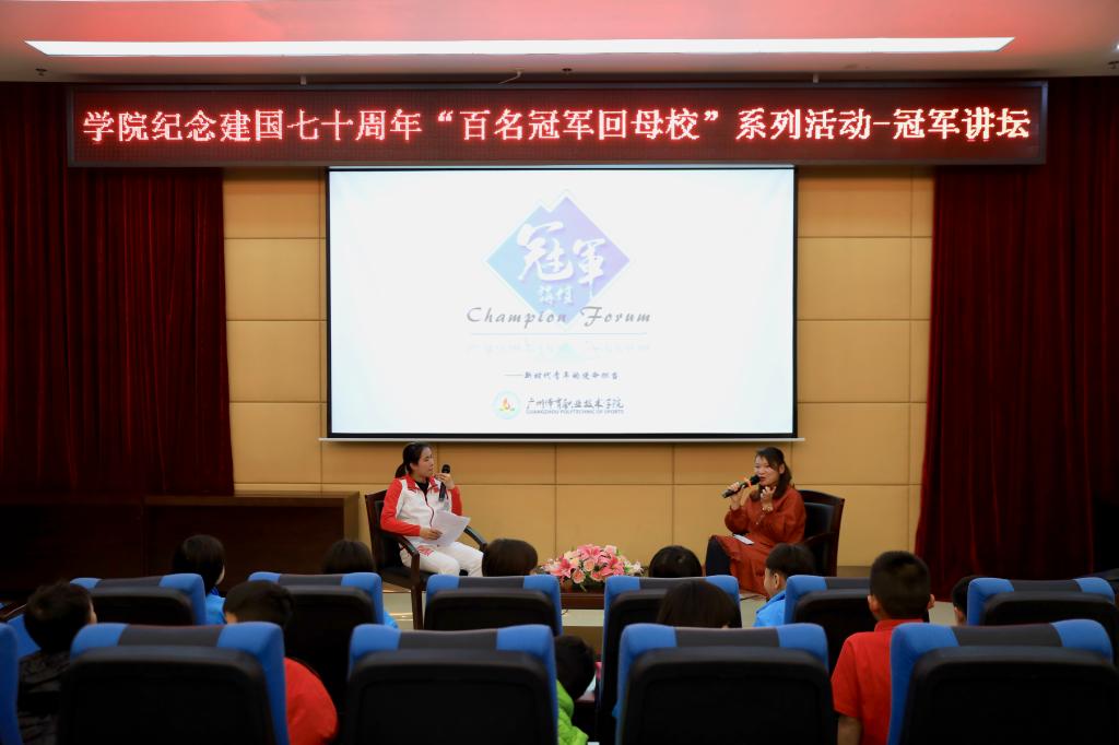 当天下午,冯宝仪作客冠军讲坛,以“新时代青年学生的使命担当”为主题,向运动员学生传授“冠军秘籍”,弘扬学院“顽强拼搏、团结协作、超越自我、爱国奉献”的“冠军精神”,鼓励引导运动员学生挥洒青春热血,积极投身到国家体育事业的发展建设中。