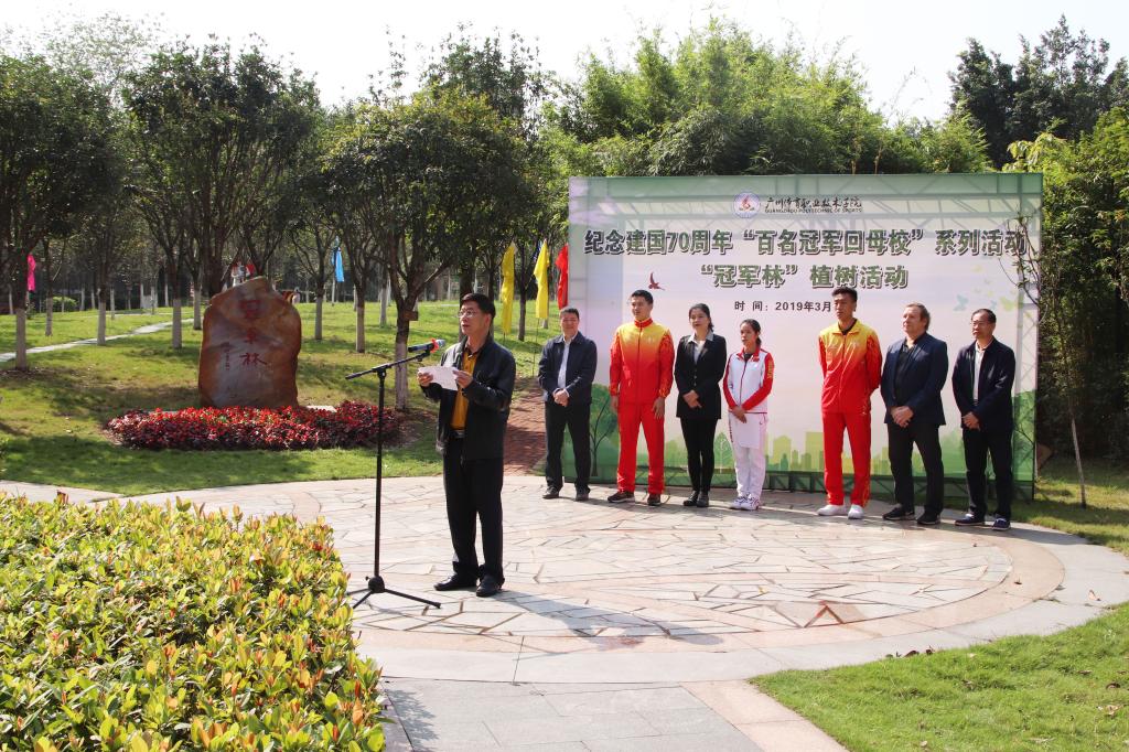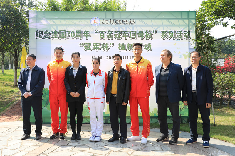 “冠军林”植树活动为广州体育职业技术学院纪念建国70周年“百名冠军回母校”系列活动拉开序幕。系列活动通过回顾建国七十周年以来波澜壮阔的历史,以“百名冠军回母校”为活动载体,通过“冠军参与、师生互动”的形式,进一步践行中国特色体育强国之路,彰显广州体育名城魅力。