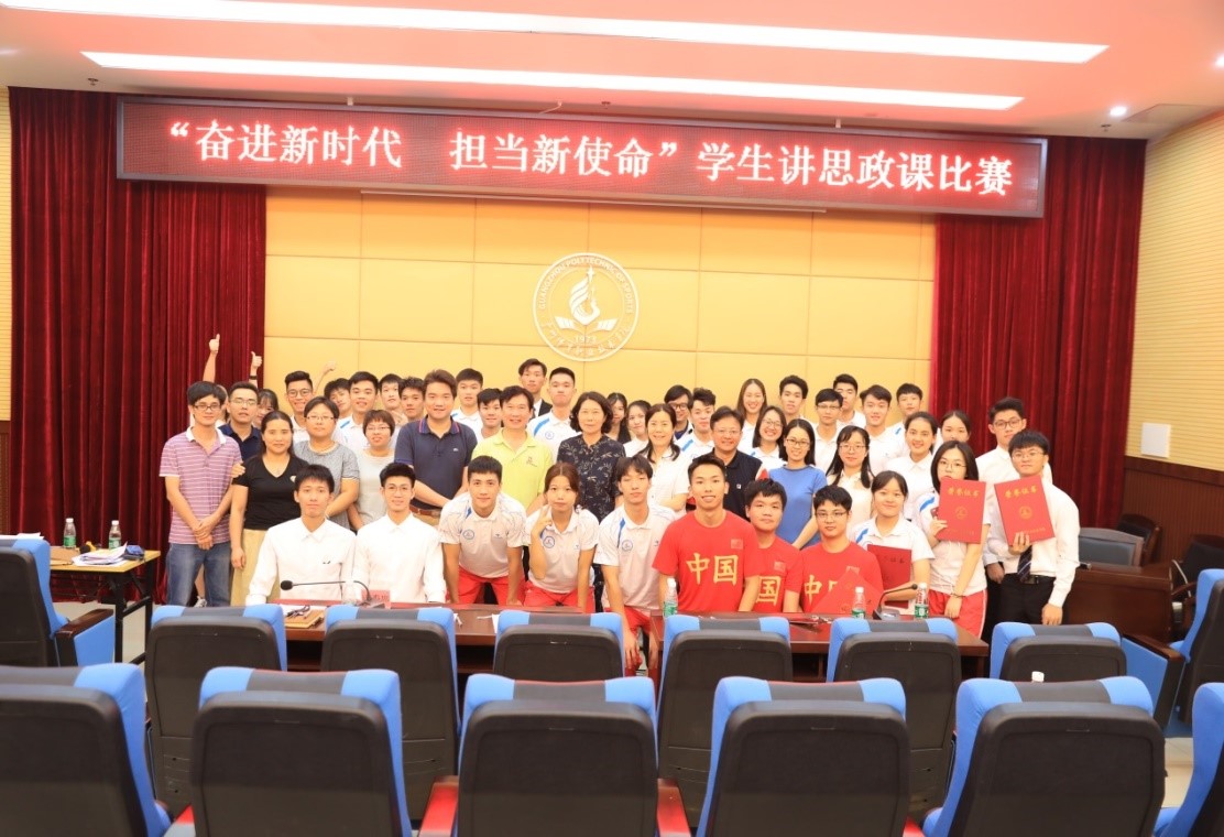 本次学生讲“思政课”比赛旨在通过这一载体,促进青年学生对习近平新时代中国特色社会主义思想学习,教育学生认识到习近平新时代中国特色社会主义思想是马克思主义中国化最新成果,是当代中国马克思主义、21世纪马克思主义,展示学生理论学习的获得感;教育引导学生认真学习习近平总书记在纪念“五四”运动100周年大会上讲话精神,牢记习近平总书记对青年的谆谆教诲,接过“五四”精神的接力棒,在建成社会主义强国,实现中华民族伟大复兴接力跑中,担负起时代赋予我们的使命,以弘扬学院“顽强拼搏、团结协作、超越自我、爱国奉献”的“冠军精神”,练就过硬本领,在未来的学习工作中跑出好成绩,不辜负党的期望、民族的重托,不辜负伟大的时代,以优异的成绩向建国70周年献礼。