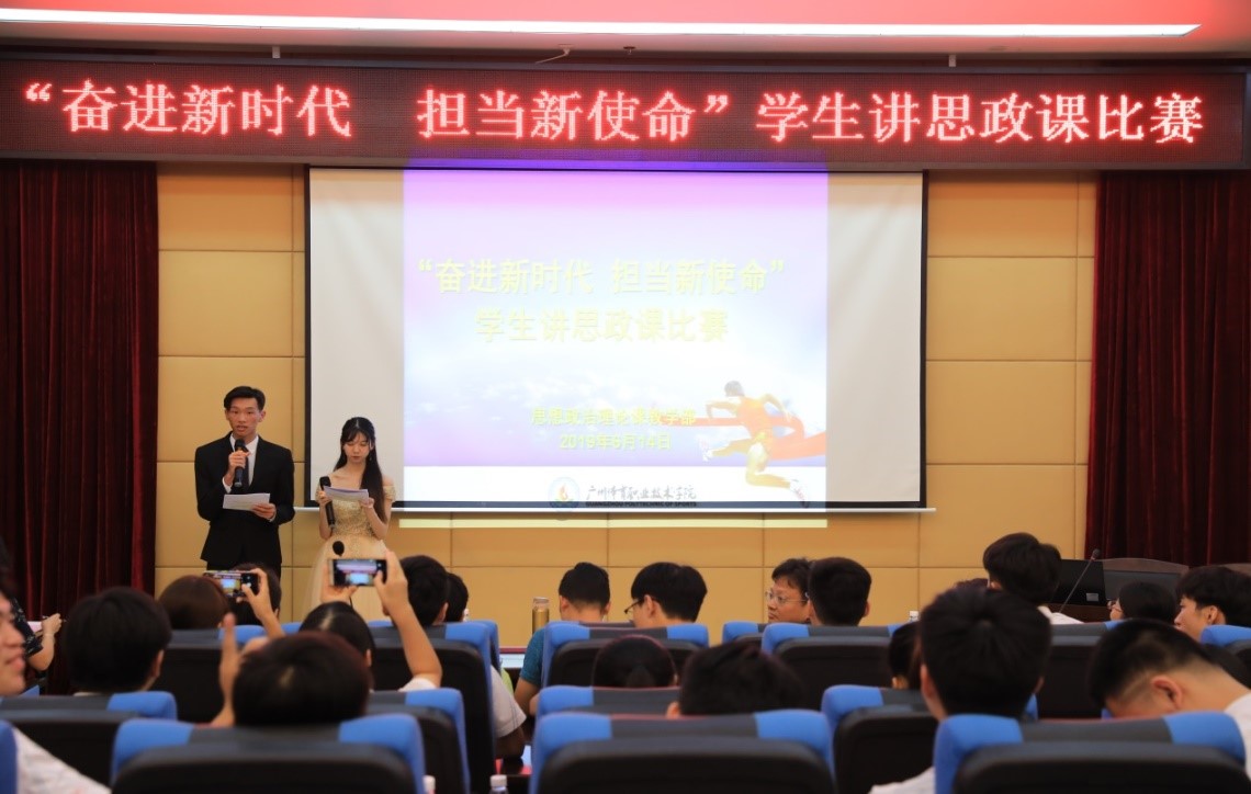 本网讯 为全面贯彻落实全国教育大会、全国学校思想政治理论课教师座谈会精神,科学有效运用当代中国马克思主义——习近平新时代中国特色社会主义思想教育青年学生,引导青年学生弘扬五四精神,坚定理想信念,认识时代使命、担当时代使命,自觉投身实现“两个一百年”奋斗目标和中华民族伟大复兴中国梦实践,在“粤港澳大湾区”建设中奋发有为,建功立业。思政部于6月14日下午在学院图书馆1号报告厅举行“奋进新时代 担当新使命”学生讲“思政课”比赛活动。