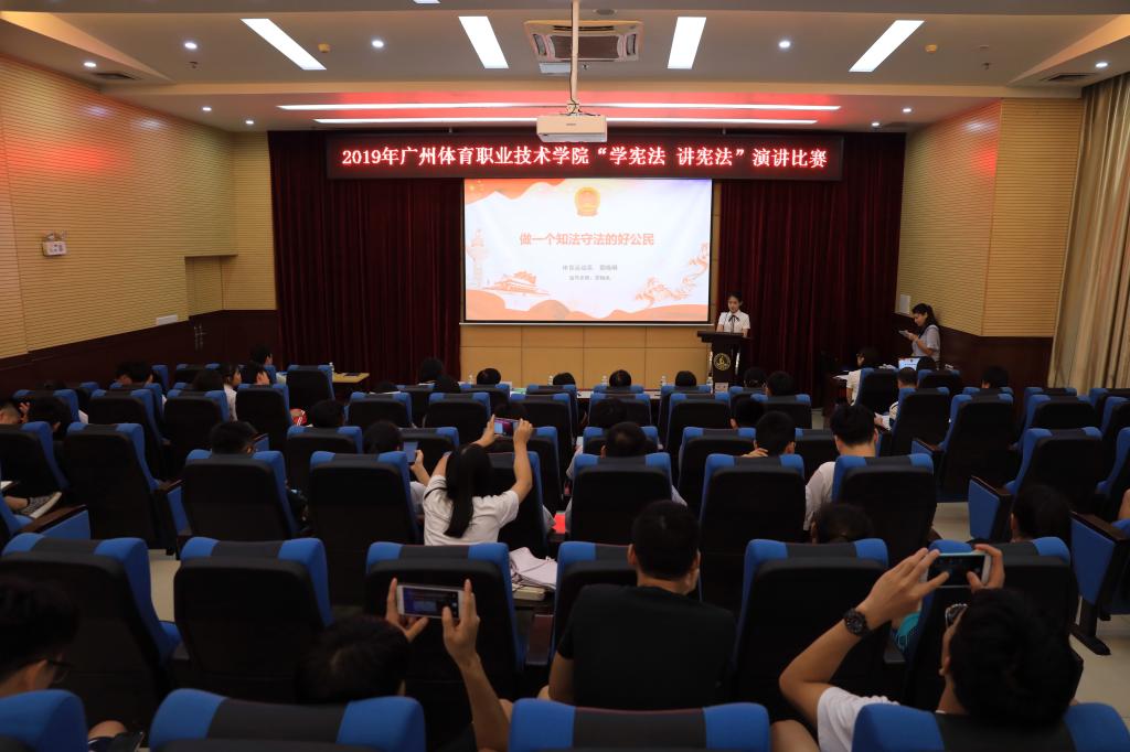 本网讯 6月17日下午,2019年广州体育职业技术学院“学宪法讲宪法”演讲比赛在图书馆一号报告厅举行,来自三系共6名参赛选手围绕宪法进行了精彩演讲,最后来自体育产业系的罗泽炬同学收获一等奖,他将代表学院参加全省“学宪法讲宪法”演讲比赛初选。