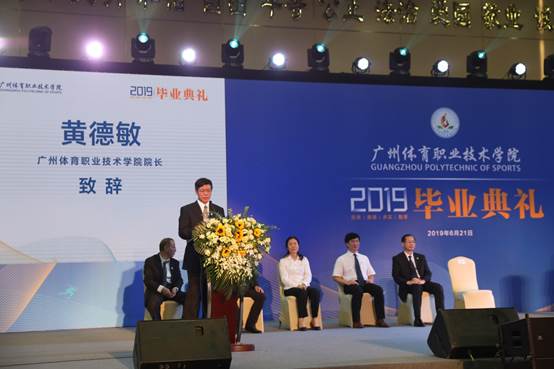 本网讯6月21日上午,广州体育职业技术学院2019届毕业典礼在东区体育馆隆重举行。学院院长、党委副书记黄德敏同志,党委副书记兼纪委书记林彬同志,副院长李国平同志出席了典礼,与毕业生家长代表、学院副处级以上干部、各系部老师及辅导员,共同见证了712名毕业生迎来人生的重要时刻,在新的起点上扬帆启航。