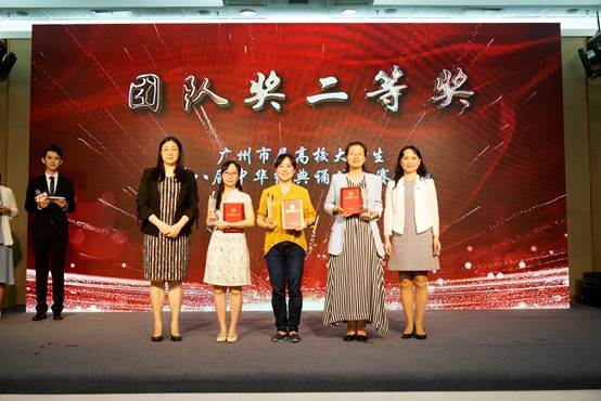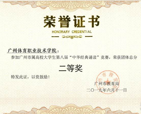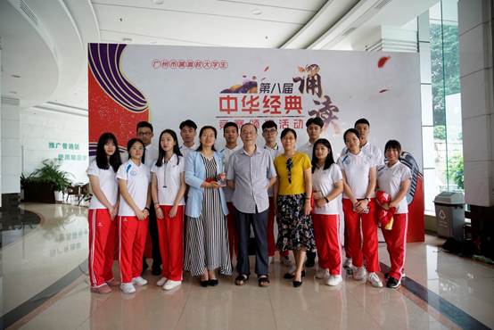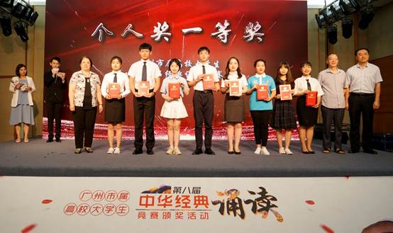 本网讯6月11日下午,由广州市教育局主办,广州大学、广州广播电视台FM96.2广州新闻电台、花城FM共同承办的广州市属高校大学生第八届中华经典诵读竞赛颁奖活动在广州广播大厦举行,为为期一个半月的竞赛活动画上了圆满的句号,给广大在校青年学生带来了一场爱国主义思想的洗礼。市教育局及市属各高校有关领导和获奖师生代表参加颁奖活动。学院公共基础课部徐山平主任带领我院师生代表,一行15人参加了颁奖仪式。