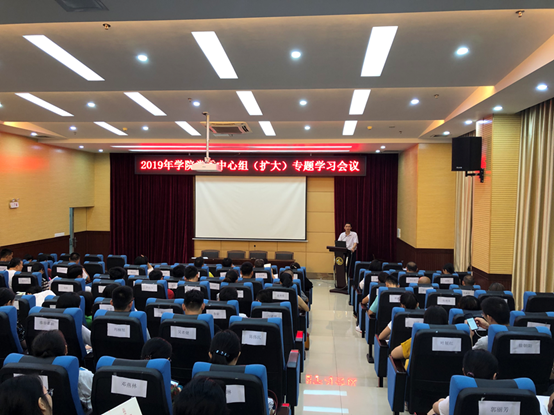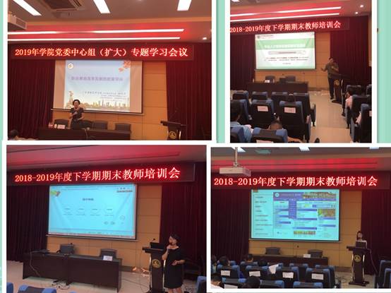本网讯7月8—9日,结合期末教师培训安排,学院在图书馆一号报告厅召开了2019年学院党委中心组(扩大)专题学习会议暨2018-2019学年第二学期期末教师培训会议。学院领导、各部门副处级以上干部及教务处、学生处、三系四部、技能实训中心(督导室)、团委、图书馆、信息中心等部门全体教职员工与兼职教师约160人参加了会议。会议由教务处处长丁宁涛主持,梁国标副院长出席会议并讲话。