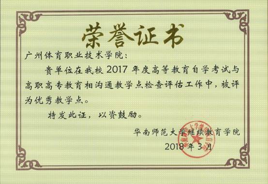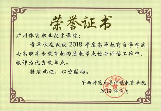 本网讯 2019年上半年,华南师范大学公布了2018年度高等教育自学考试与高职高专教育相沟通教学点检查评估结果的通知,我院被评为2018年度“优秀教学点”。这是学院自合作开办自学考试相沟通班以来,继2016、2017年度再次荣获 “优秀教学点”的殊荣。