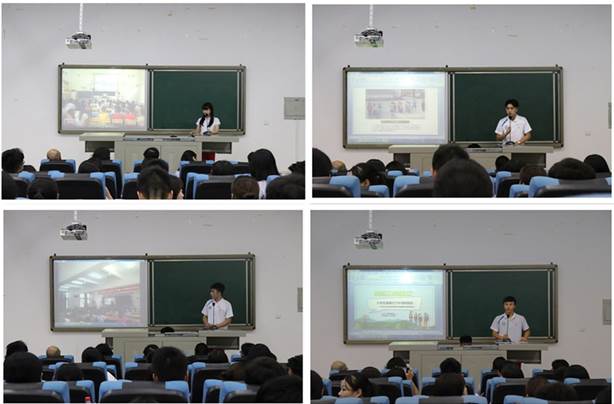 本网讯10月9日14点40分,我院2019年“携手奔小康,共筑中国梦”大学生暑期文化科技卫生“三下乡”社会实践活动报告会在图书馆三号报告厅举行。体育运动系党总支书记黄建新、体育保健与康复系党总支书记黄克铭、思想政治理论课教学部兰茹教授、体育产业系副主任朱达奇、院团委副书记吴笑慧出席了会议并担任比赛评委。三系团总支书记、思政部全体教师、院团委全体人员、各队指导老师、实践队全体队员,共100余人参加了报告会。