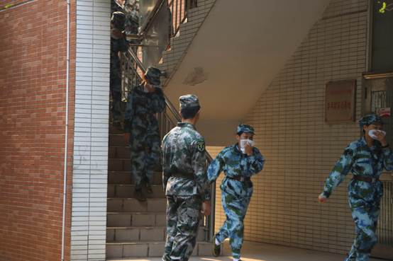 模拟演练在高职学生宿舍、东校区田径场进行。伴随着响彻校园的警报声,辅导员立即在各个楼层指挥学生弯着腰,捂住口鼻,沿着学院应急疏散路线快速、有序地撤离至东校区田径场安全区。在安保公司的安排下,进行反恐防爆演练。消防讲师围绕“防范火灾风险,建设美好家园”为学生讲解了消防安全知识、生活中遇到初期火灾的有效处理办法等,并给师生演示灭火器的正确使用方法。