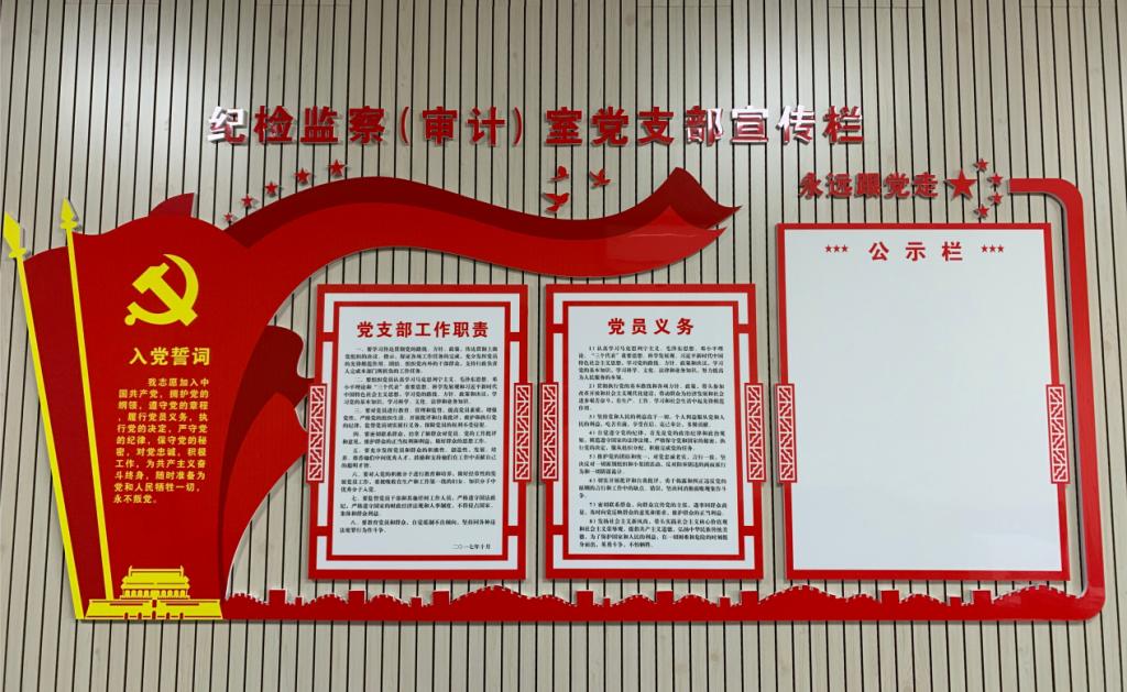 一是制作纪检监察(审计)室党支部宣传栏,明确支部工作职责和党员义务,做好党务和事务公开,营造浓厚的党建文化氛围。