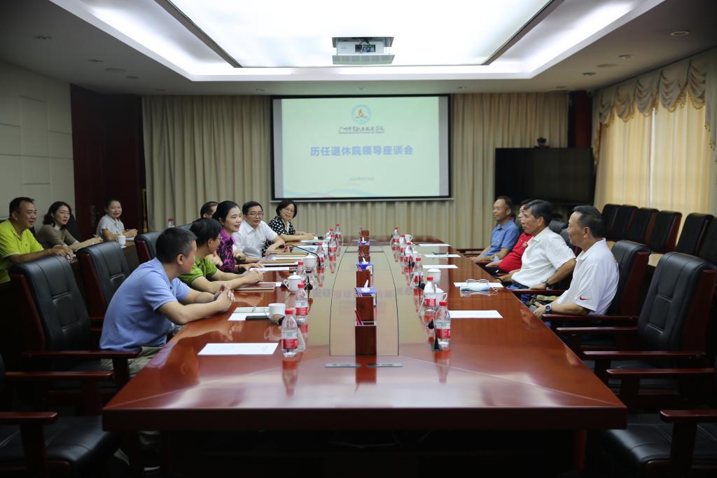 学院党委书记谭爱英,院长、党委副书记李国平带领现任班子成员,历任退休领导孔茂胜、胡树森、陈德胜、黄新明、梁文钦参加了座谈。会议由谭爱英书记主持。