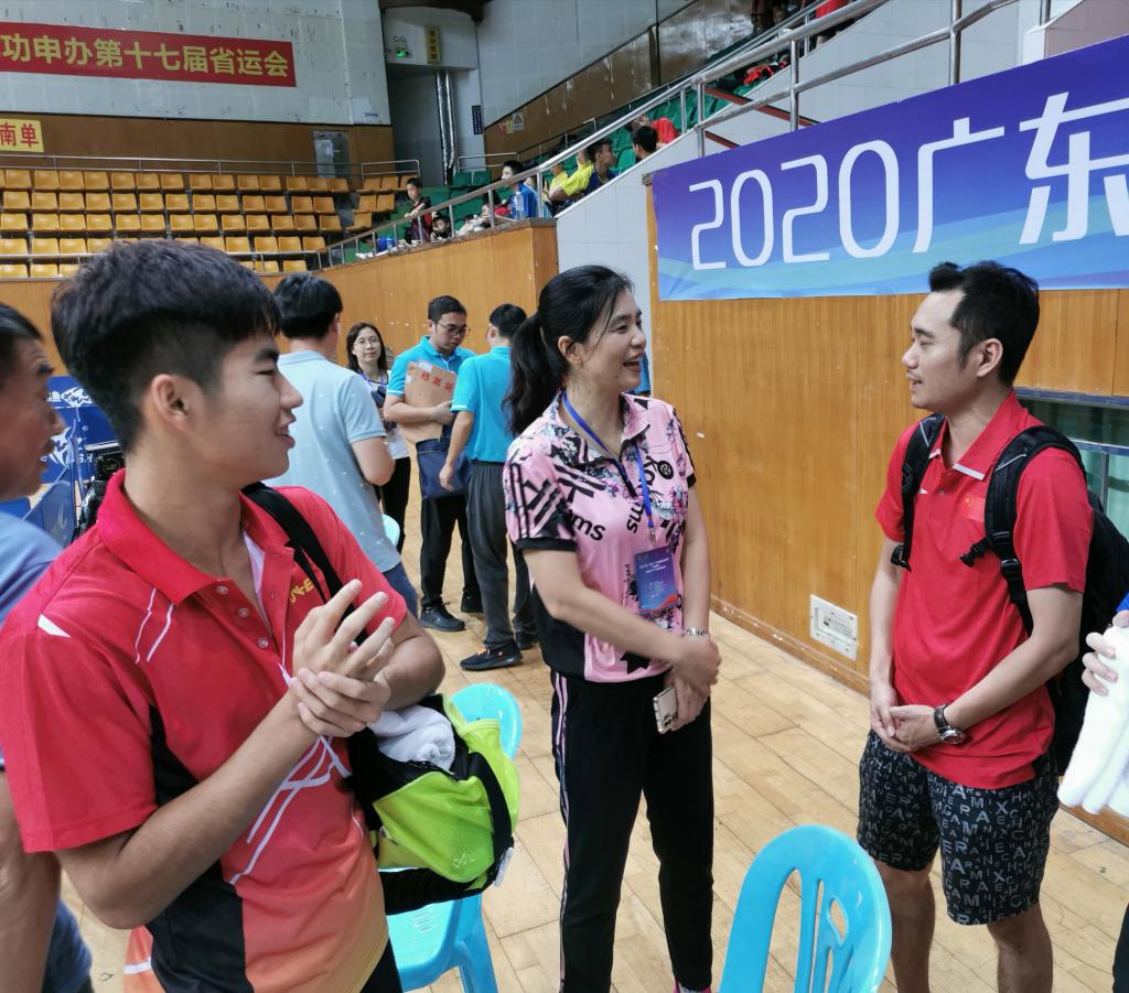 2020年广东省青少年乒乓球锦标赛于9月21日至27日举行,学院乒乓球专项部组队代表广州队出战。23-24日,学院党委书记谭爱英一行深入比赛现场,观看了各组别团体半决赛、决赛,听取了训练竞赛处及乒乓球专项部负责人关于省锦标赛训练备战、后勤保障、队伍梯队建设、省示范基地工作等相关情况汇报,并受邀为获奖运动员颁奖。