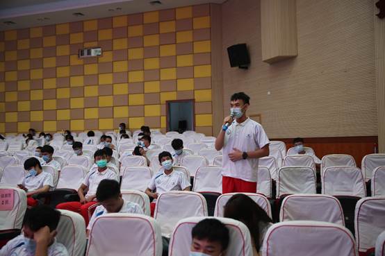2019级体育运营1班周伟澎同学与大家分享了73岁的李兰娟院士身先士卒,率领科研团队,潜心研发治疗新冠肺炎药物的抗疫故事,并说新时代大学生要向这样的抗疫英雄学习,发挥自身专业优势,对社会和国家做出更大的贡献,担当起新时代赋予的使命。