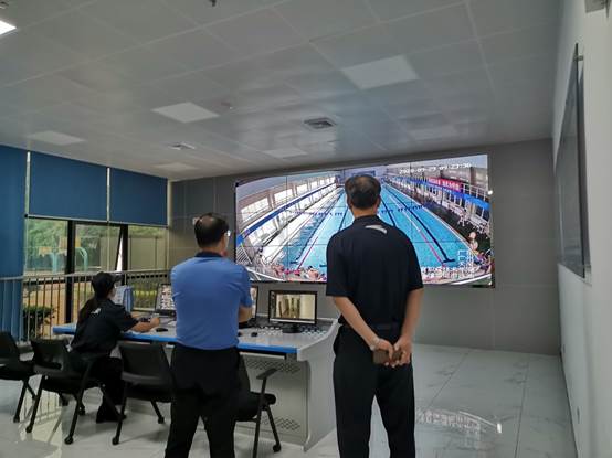 检查组一行从东校区开始逐项检查了视频监控中心、大专宿舍、大专食堂、附属学校、运动员食堂、运动员宿舍、交流中心等区域。