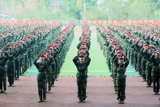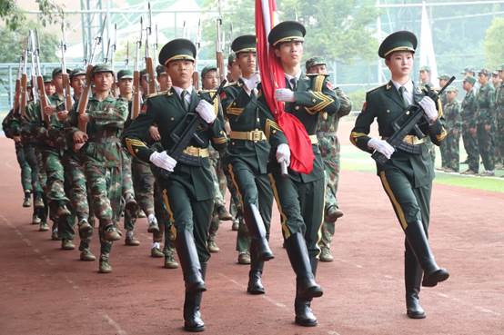 同学们以昂扬的斗志、整齐划一的动作展示了新时代大学生的风采,这也是全体军训教官和学生在14天的军训中刻苦训练的集中体现。