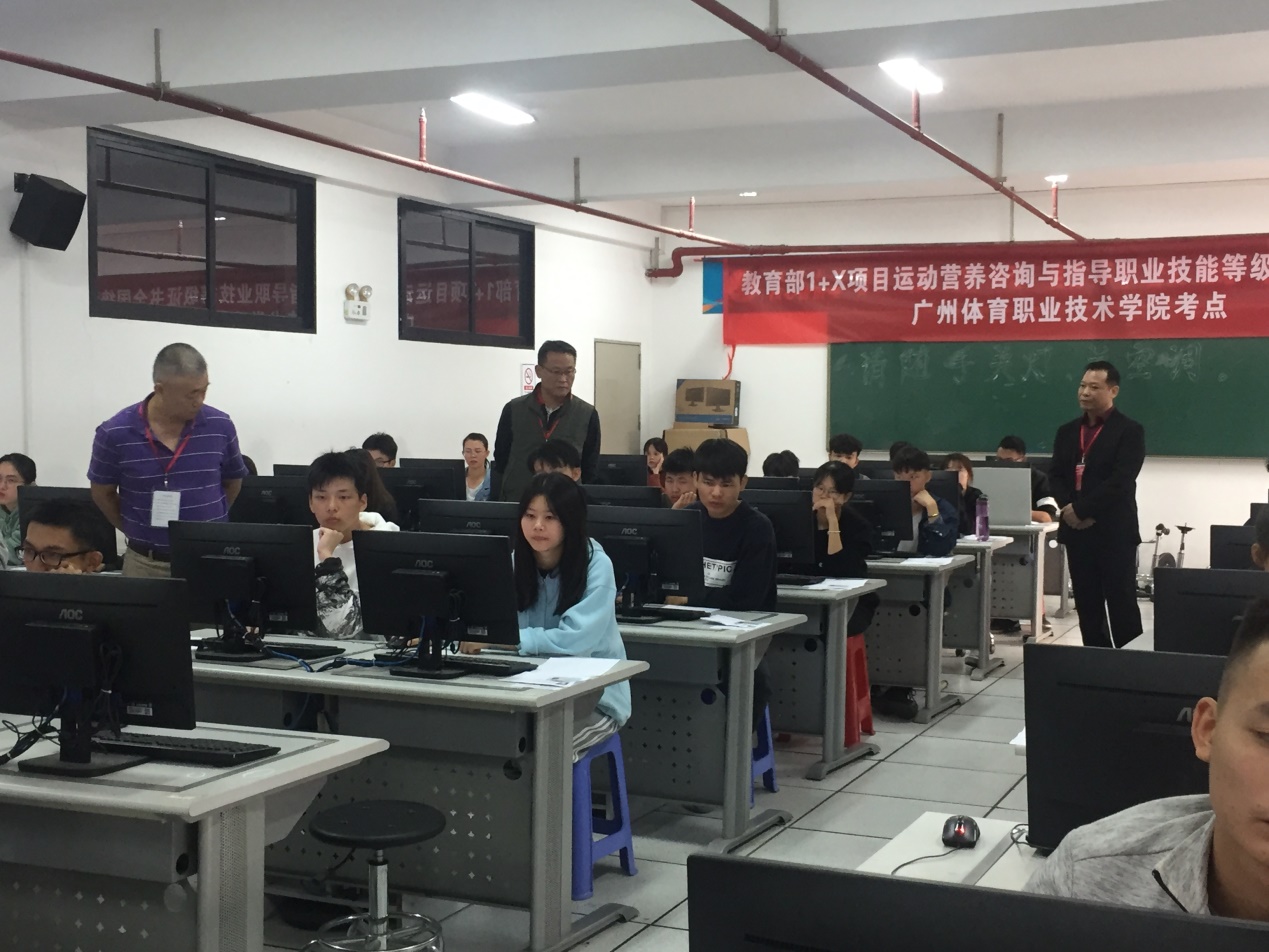 本网讯 在《国家职业教育改革实施方案》引导下,按照教育部、省教育厅做好1+X项目证书制度试点工作的要求,学院成功申报了国家教育部1+X项目《运动营养咨询与指导职业技能等级证书》的试点院校和考点资格。本项目由体育保健与康复系牵头申报,也是学院成功申报的第一个1+X项目。11月28日,教育部1+X项目《运动营养咨询与指导职业技能等级证书》全国统考在我院成功举行,张苹副院长担任主考,技能实训中心主任林文戈、信息中心主任赵立江、体育保健与康复系主任黄志刚全程巡考,学院体育保健与康复系120名学生参加了考试。