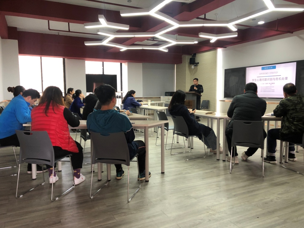 12月23日下午15:00,我院在东校区综合楼823室举行了“心理危机识别与干预”专题培训。此次培训邀请了广东工业大学心理健康教育指导中心黄艳苹主任来我院授课,学生处、全体辅导员及心理健康专职、兼职教师近30人参加了培训。