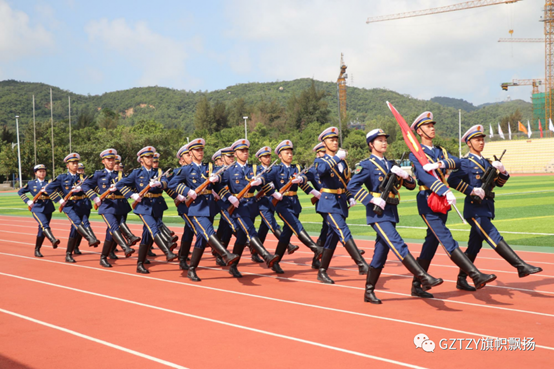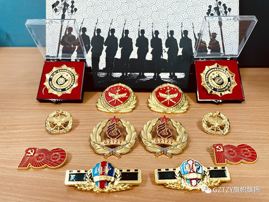根据省赛要求,此次比赛队伍着装严禁穿着使用军服及其仿制品,可缀钉佩戴具有学校特色、体现国旗护卫队特征的标志服饰。我院国旗护卫队根据要求,在礼服配饰上自行设计及定制,纳入了学院及国防特色,成为赛场上一道亮丽的风景线。
