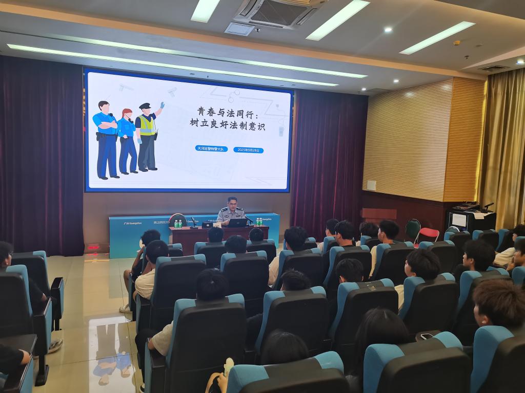 本网讯 为优化“红色引领、联动共建”机制,加强警校合作发展,做好新生思想教育和法制教育,9月28日,广州体育职业技术学院体育运动系党总支邀请结对共建单位——广州市公安局天河分局巡警特警大队,在图书馆1号报告厅为新生开展“青春与法同行,树立良好法制意识”专题讲座。讲座由广州市公安局天河分局巡警特警大队李洪富副大队长主讲,体育运动系党总支书记余红斌、副主任张成龙及五年一贯制新生和新生班辅导员老师一起参与了本次活动。