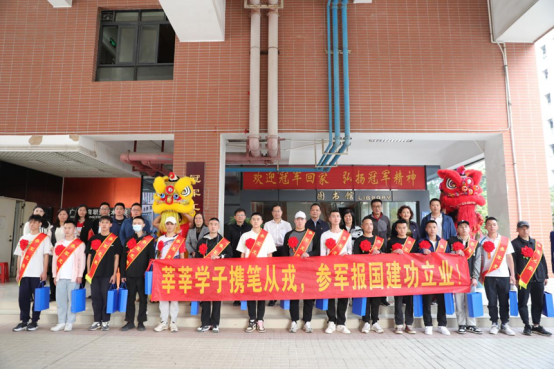 学院通过召开“大学生退役军人就业创业宣讲会”、参军入伍宣讲会,向学生传递“传承红色基因,弘扬冠军精神”。建立了以退伍兵为代表的“标兵之家”宿舍,组成了征兵宣传队、宿舍文明督察队,推出了退役大学生风采宣传栏,以现役军人郭子愿(一等功)、樊振东(一等功)为标杆,退伍不褪色,真正发挥标兵的作用,树立榜样的力量。