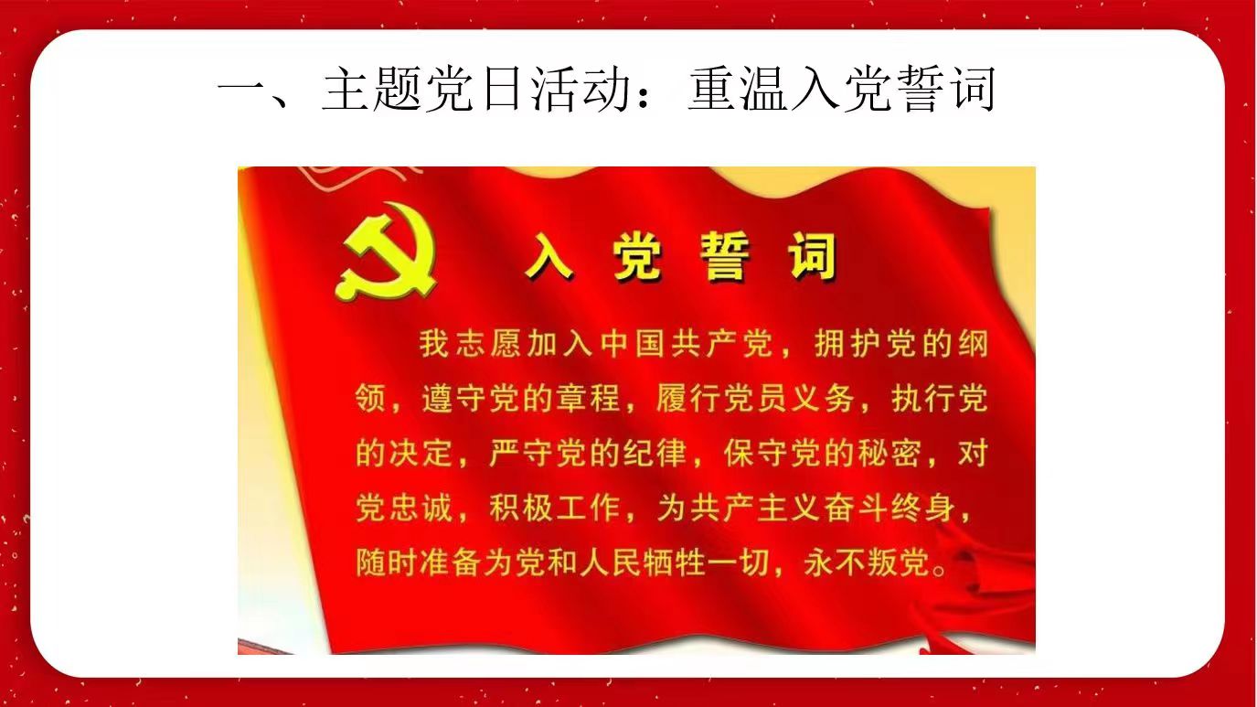 会上,支部书记张瑜领誓,党员宣誓,重温入党誓词,党员们铭记誓言,表示要为共产主义奋斗终生。