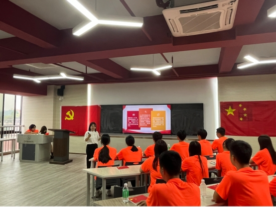 第三个环节由陈利老师带领大家进入红色教育小课堂。陈利老师从心理学角度分析了升国旗、唱国歌让大家热血澎湃,爱国给我们带来的积极心理能量。爱国让我们拥有集体感,帮助我们更好探索自我同一性,从小我走向大我。