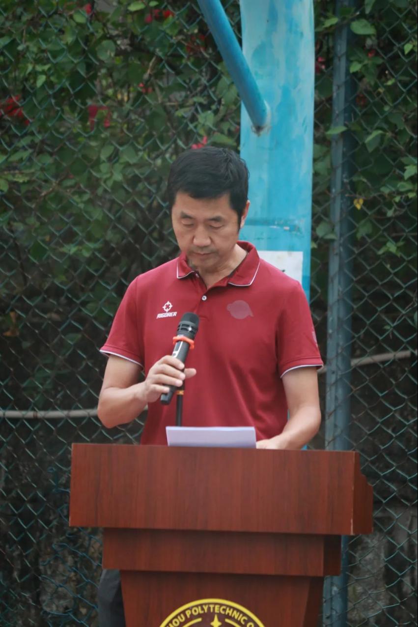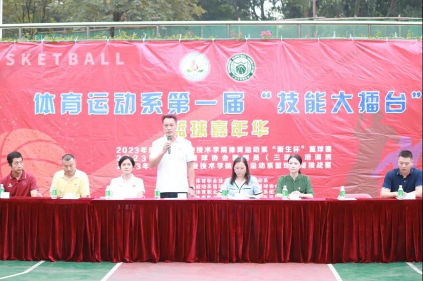 本网讯 金桂飘香,秋风习习,吹来了学生们的活力与激情,为丰富学生校园文化生活,提高学生篮球专项技能,11月8日下午,广州体育职业技术学院体育运动系第三届篮球嘉年华活动在东区篮球场正式开幕。体育运动系书记余红斌、主任谈群林、副主任吴笑慧、学院团委副书记明泽雨、体育运动系教工支部书记张成龙、体育运动系学生支部书记任瑞超,以及篮球教研团队老师和辅导员团队老师出席了开幕式。开幕式开始前举行升国旗仪式,全体参加开幕式人员向国旗庄严地行注目礼,齐唱中华人民共和国国歌。