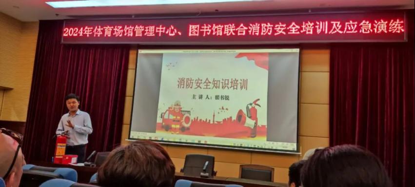 本网讯 为切实做好消防安全工作,提高消防安全意识,普及消防安全知识,强化灭火技能,增强教职员工在紧急情况下的自我防护能力和应变能力,营造平安和谐的校园环境,4月9日下午,广州体育职业技术学院体育场馆管理中心联合图书馆在图书馆一号报告厅组织开展了2024年消防安全知识培训及应急演练,培训工作在安保中心的大力支持和配合下顺利开展。