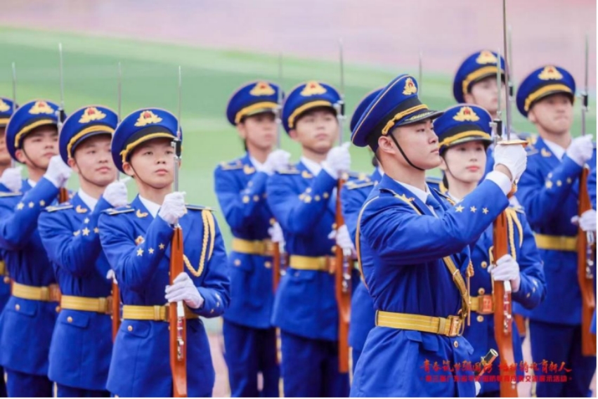 本网讯 青春筑梦强国防,培根铸魂育新人。为期4天的第三届广东省学校国防教育成果交流展示活动于5月20日拉下帷幕。广州体育职业技术学院国旗护卫队以昂扬的精神风貌、流畅利落的动作再获高职组一等奖。