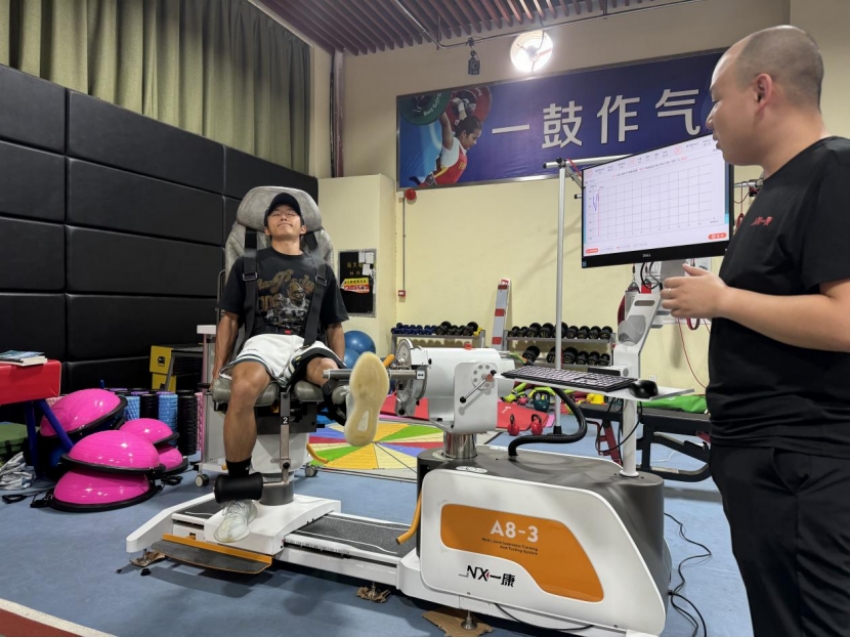 本网讯 5月29日下午,广州体育职业技术学院体育运动系体能训练专业“多关节等速力量测试与训练仪”培训在学院三号馆体能测试中心成功举办。这款多关节等速力量测试与训练仪器是广州一康医疗设备实业有限公司捐赠的新设备。本次培训特别邀请了广州一康公司的专家老师亲临现场,体能训练专业带头人张卫教授、体能训练专业全体老师、体能训练专业2023级全体学生参加。