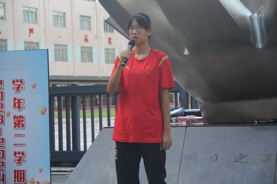 随后,初二D班篮球队王雨涵同学进行主题为“怀揣梦想,砥砺前行”的发言。
