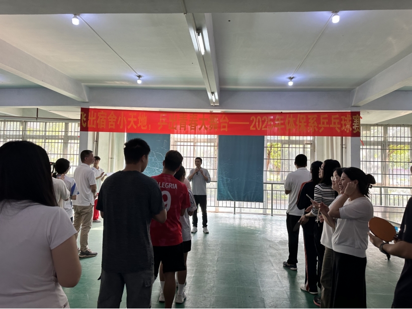本网讯 为推进落实学院教风学风建设月专项工作,开好头、起好步,营造良好的教育教学环境,通过体育活动促进师生互动,增进师生情谊。3月26日下午,广州体育职业技术学院体育保健与康复系在学生宿舍楼乒乓球馆举行了师生乒乓球赛开幕式,参赛选手包括体育保健与康复系教职工和学生共四十余人。