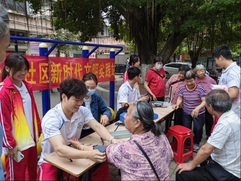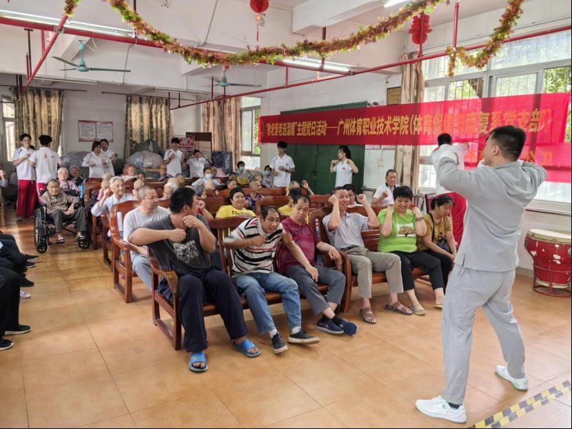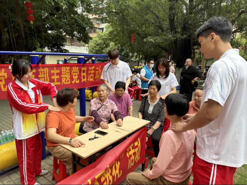 抵达炭步社区后,全体人员按照计划分成两组迅速行动。第一组奔赴炭步镇小公园。活动开始,系部老师即带领社区居民练习太极养生功,刚柔并济的招式吸引众多居民踊跃参与;而后,师生们正式进行热闹、有序的推拿理疗、血压测量、心理咨询等的项目活动,并耐心解答居民健康疑问,力争用专业知识守护健康。与此同时,第二组师生来到炭步镇敬老院。其中吴者健老师带领老人家们做起了简单易学的养生操,大家跟着节拍舒展身体、拍打部位,现场充满欢声笑语;体育保健与康复系2023 级康复治疗技术班学生黄子萌化身 “养生小讲师”,结合老年人常见健康问题,深入浅出地讲解养生知识。随后,师学们也为老人家们测量血压、推拿按摩,还围坐在老人身边,倾听他们的故事,陪他们唠家常,让老人家们感受到温暖与关怀。