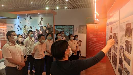 在庆祝中国共产党成立100周年之际,全体党员举起了右手,面对鲜红的党旗,重温入党誓词。这是初心使命的再宣示,这是持续奋斗的再出发。随后,同志们一起参观了校史馆,在讲解员娓娓道来的解说中,大家更加深入了解了学院走过的发展、改革之路。通过党史、校史的学习,党员们纷纷表示要学史明理、明理悟道,做到知史爱党、知史爱国、知史爱校。