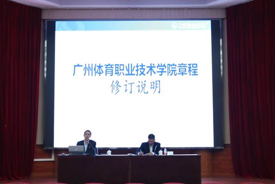 本网讯 12月9日下午,广州体育职业技术学院在西校区阶梯会议厅召开教职工代表大会,来自学院各部门的73名教代会代表参加了本次会议。经会议审议,一致通过了《广州体育职业技术学院章程》(修订审议稿,简称新《章程》)。会议由学院工会主席龙国英主持。