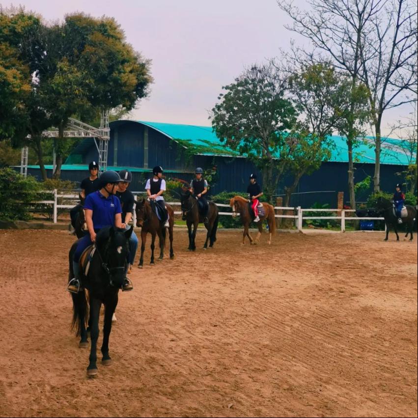 依托体育产业系校企合作单位广州中盟马业有限公司番禺实训基地,学院休闲体育专业2022级35位学生在张艳瑾老师全程带领下,历经4周顺利完成了由企业提供场地、马匹、技术指导共计36学时的全免费教学过程。虽然只有短暂的4周时间,但同学们收获满满,全班同学已能熟练掌握马术运动基础动作、场地骑行技术、山地骑行技术、初级训马技能等。通过本次马术实训教学,使学生们不仅能学到马术运动技能,同时也近距离了解了马术产业相关工作岗位和内容,为将来跻身于休闲体育产业就业奠定了良好的基础。