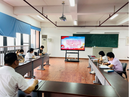 本网讯 为深入学习习近平总书记视察广东重要讲话、重要指示精神,坚决做到“两个确立”、“两个维护”,扎实推进学习贯彻习近平新时代中国特色社会主义思想进教材、进课堂、进头脑工作,5月17日上午,广州体育职业技术学院思想政治理论课教学部党支部在马克思主义研修室举行学习贯彻习近平新时代中国特色社会主义思想主题教育党课暨习近平总书记视察广东重要讲话、重要指示精神宣讲“进课堂”集体备课会,党支部全体党员参加,思想政治理论课教学部副主任吕剑辉主持会议。